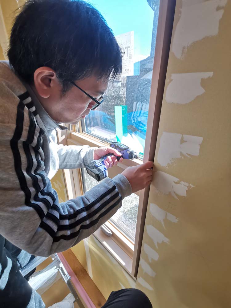 2025年12月26日 窓の額縁(ケーシング)のレクチャー 窓のケーシングが完了、プロ並みの綺麗な仕上がりです