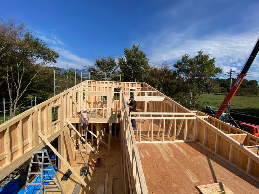 2021年9月22日 上棟工事2日目 小屋組み(屋根)が上がりました。
