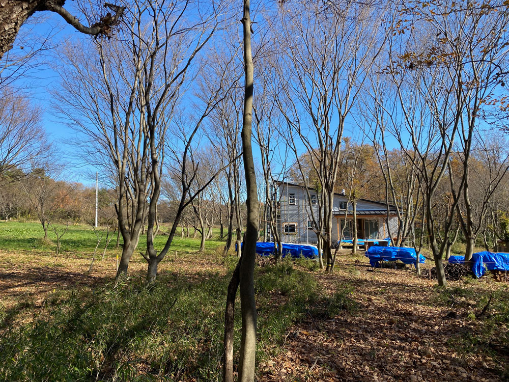 2021年11月17日 外部建具工事 那須の広葉樹の森はすっかり落葉し冬支度です