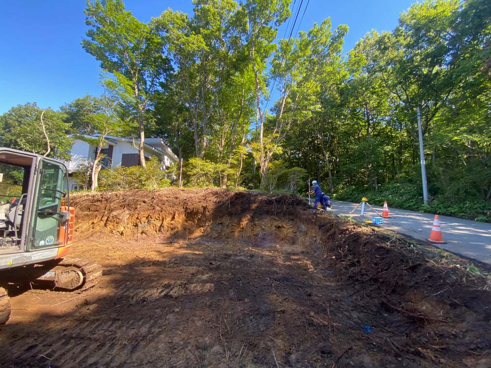 那須連峰黒尾谷岳の景観が素晴らしい土地でA様邸伐採抜根造成工事に着手しました。