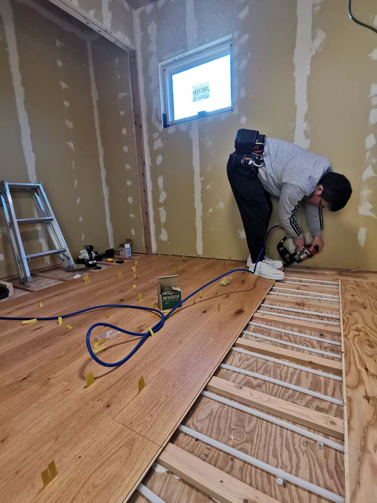 2025年12月6日 床フローリングレクチャー 1日のレクチャーで一部屋を貼り終えることができました